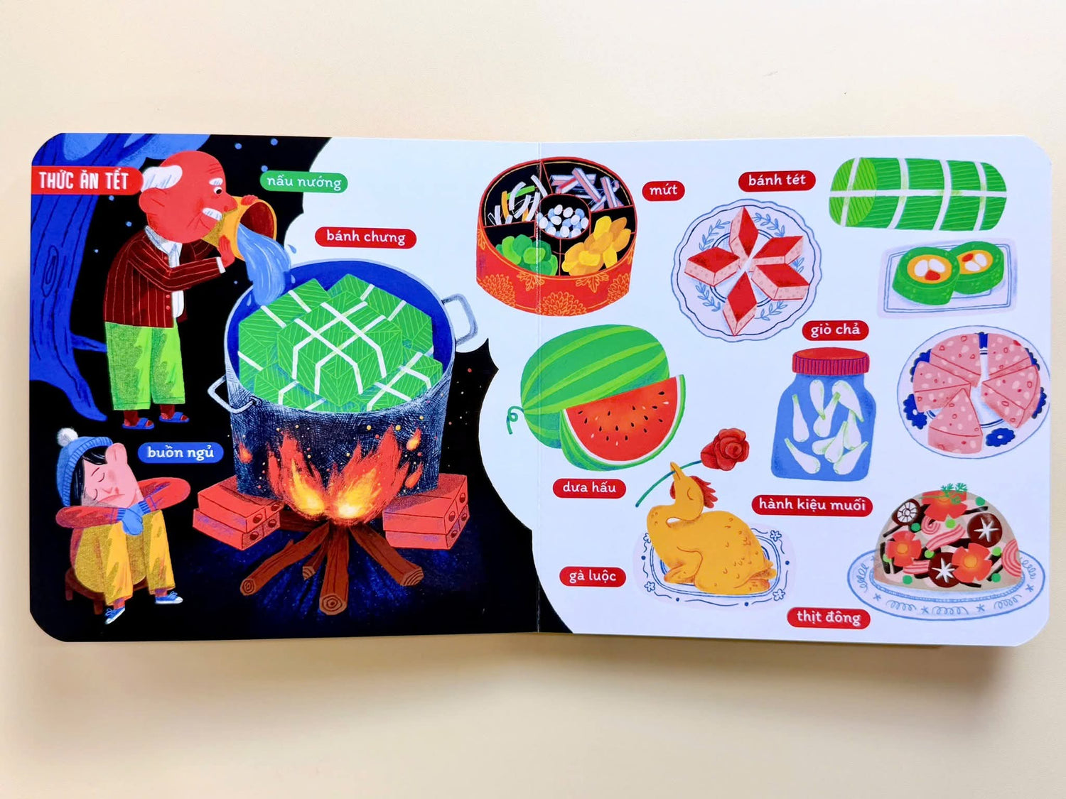 Màu sắc cũng được cô xử lý theo cách mới mẻ, không sử dụng tông màu vàng-đỏ quen thuộc ngày Tết mà sử dụng đa dạng màu sắc khác như xanh dương và xanh lam,... “Tết là nhất - 100 từ vựng đầu đời” vừa mang tới một ngày Tết ‘rực rỡ sắc màu”, vừa được xử lý cẩn thận để có thể phát triển tối đa thị giác của trẻ.